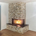 Der rund 400 kg schwere Frei Cheminée-Einsatz konnte aus Platzgründen (Treppenaufgang zu eng) nicht auf dem konventionellen Weg in die Wohnung ins Obergeschoss transportiert werden. Der Helikopter machts hier möglich, der Cheminée-Einsatz wurde auf den Balkon im Obergeschoss abgesetzt von wo er dann auf den dafür vorgesehenen Platz positioniert werden konnte.